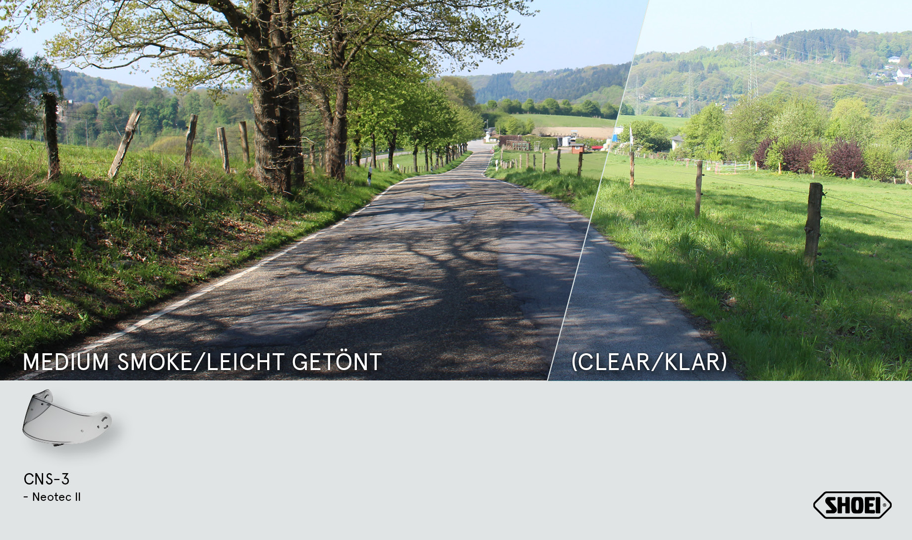 Shoei CNS-3 Mellow Smoke -visiiri tarjoaa miellyttävän sävyn kirkkaisiin ajo-olosuhteisiin ja parantaa ajomukavuutta. Alkuperäinen Shoei-varaosa takaa täydellisen istuvuuden, nopean vaihdon ja luotettavan suojan tuulta, sateita ja epäpuhtauksia vastaan.